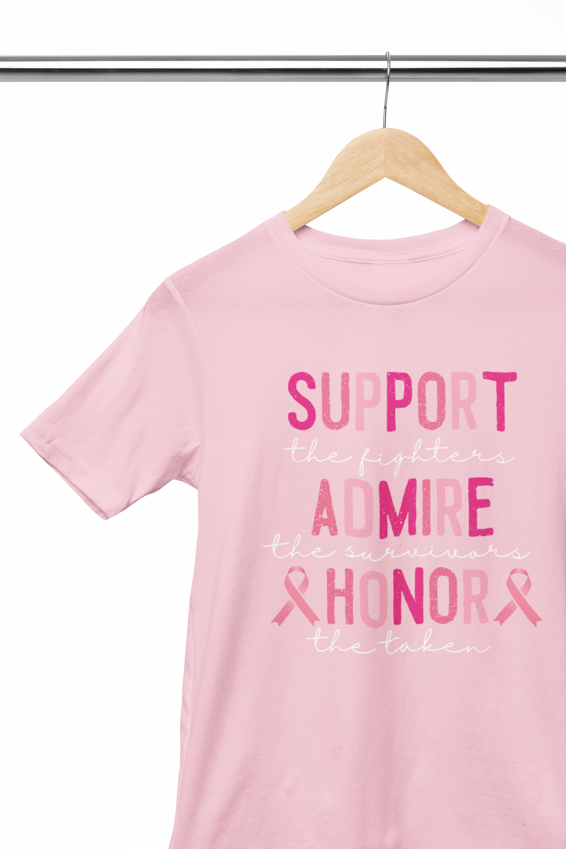 Stay warm while showing your support for breast cancer research in this cozy Support Admire and Honor T-shirt. Every purchase supports a donation to the cause, so you can stay stylish while making a difference!